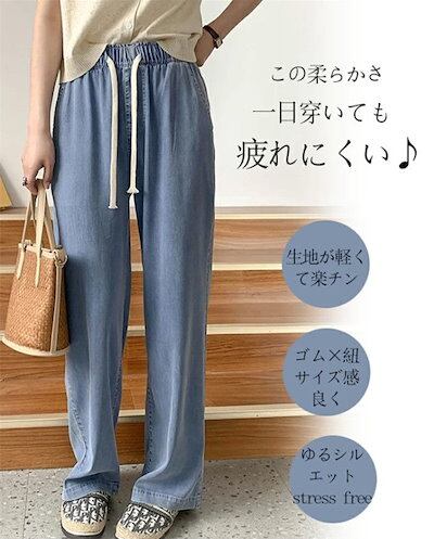 テンセルデニム ワイドパンツ レディース デニムパンツ UVカット 冷感素材 接触冷感 冷感 ガウチョパンツ サルエル パンツ ゆるパンツ リラックス ボトムス ひんやり 薄手 春 夏 秋 ウエストゴ