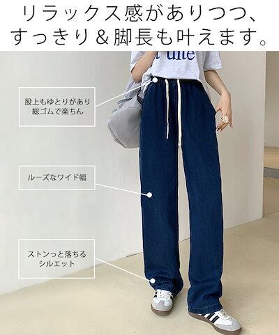 デニムパンツ レディース ひんやり ワイドパンツ デニム 春夏 無地 ロング丈 ストレートパンツ ジーンズ 薄手 涼しい UVカット ゆるパンツ ウエストゴム ガウチョ 体型カバー ボトムス ストレ