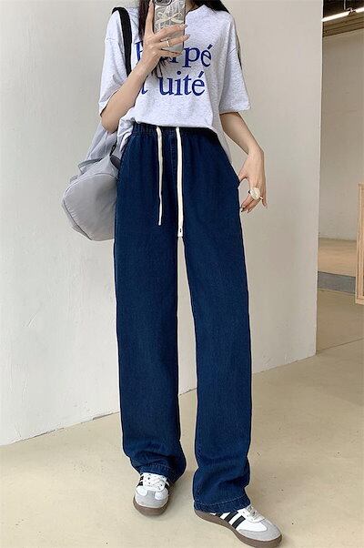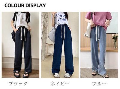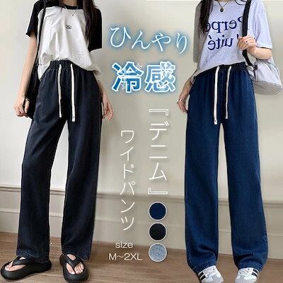 デニムパンツ レディース パンツ 春夏 イージーワイドパンツ レディース ワイドパンツ ボトムス ウエストゴム デニム 接触冷感 涼感 春 夏 ひんやり UVカット 無地 薄手 涼しい ロング丈 スト