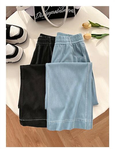 デニムパンツ 涼しい パンツ レディース ワイドパンツ 爽やか 夏 接触冷感 パンツ ひんやり ジーンズ 清涼感 ボトムス 冷感素材 リラックス ウエストゴム ジーパン 薄手 長ズボン イージーパンツ