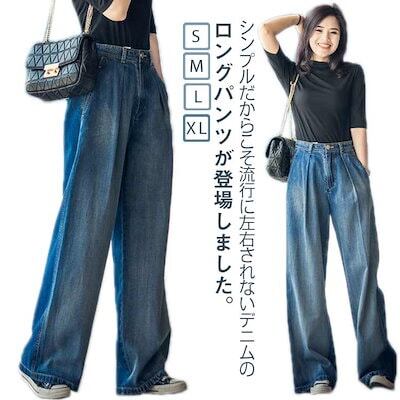サルエルデニムパンツ ワイドパンツ ジーンズ レディース ハイウエスト ロングパンツ 美脚 ゆったり 通勤 春 夏 秋 ズボン 大きいサイズ 人気 無地 ストレート 体型カバー ボトムス ジーパン