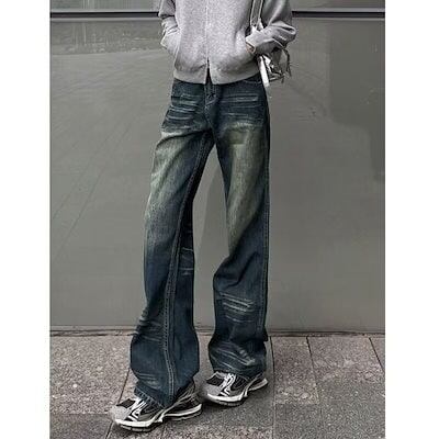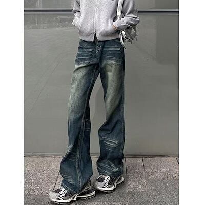 アメリカの街頭で水洗いして古いジーンズを作る男女春夏直筒ゆるい欧米の高街vibe風