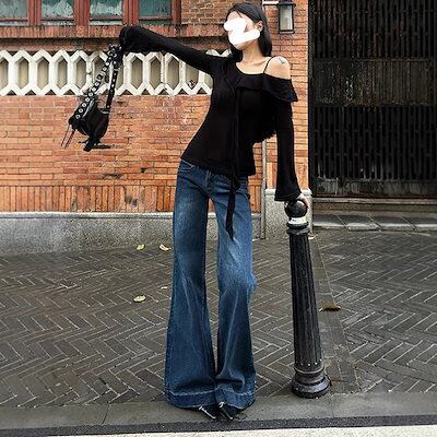 欧米の高街風千年ギャルジーンズ女性秋cleanfitマイクロスピーカーがズボンを引きずっている