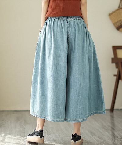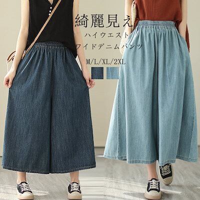 【人気商品】ワイドパンツ デニム パンツ レディース ワイド デニムパンツ 春 夏 ガウチョパンツ ロング 9分丈 ガウチョ スカーチョ ボトムス ロングパンツ ハイウエスト ウエストゴム 大きいサ