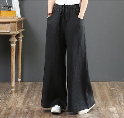 ひんやりボトムスデニムボトムスショートパンツ韓国ファッション無地脚カリネンワイドパンツレディース綿麻パンツワイドパンツロング伸縮性のあるウエスト百掛け着痩せスキニーデニムパンツ