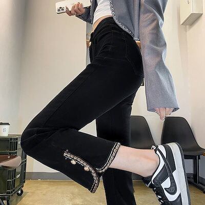 デニムボトムス ワイドパンツ 韓国ファッション ジーンズ レディース デニム ズボン 春秋 ハイウエスト パンツ フレアパンツ美脚 ひんやりボトムス