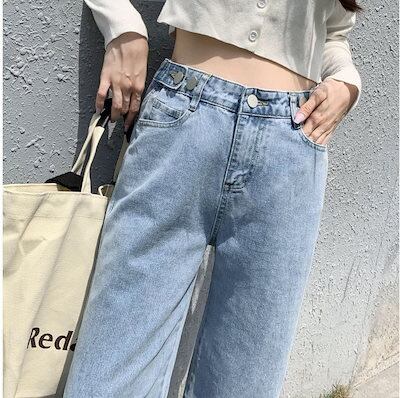 美脚 ハイウエスト デニムパンツ ワイドパンツ腹凹ウエスト 着痩せ脚長効果 レディース ジーンズ 美尻-193