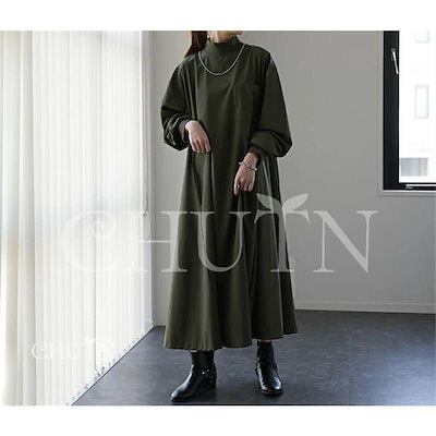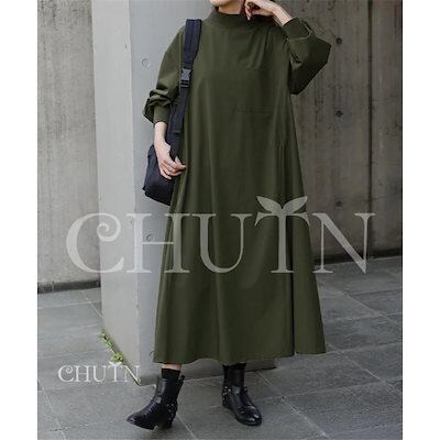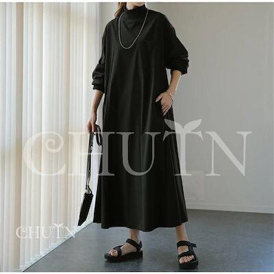 新品 大人気 ワンピースレディース ロング長袖ニットドッキング タートルネックワンピース 体型カバー ゆったりカジュアルママ服