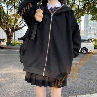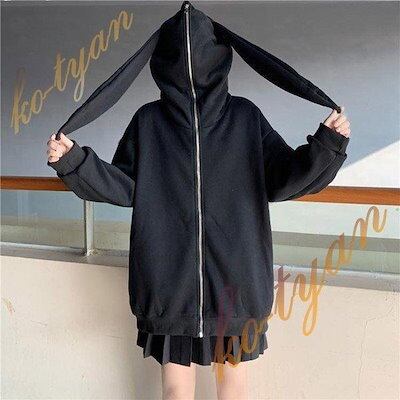 新作登場 パーカー うさ耳 アニマル 白 ホワイト ブラック 黒 うさぎ うさみみパーカー 秋冬 かわいい オーバーサイズ
