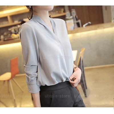 ブラウス レディース 春秋 白シャツ シフォン 長袖 フォーマル ブラウス vネックブラウス