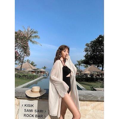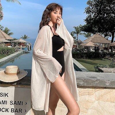大人の魅力 レディースファッション 2色 薄手 トップス カーディガン 日焼け止め 水着 ブラウス ゆったり 透け感 長袖 白 ベージュ 日焼け防止 ビーチ シンプル