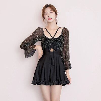 水着 レディース 体型カバー 水着ワンピース型 サロペット水着 長袖 UVカット 肩出し 小胸バンドゥ オシャレ可愛い スイムウェア 水着 高校生 ラッシュガード ビーチ