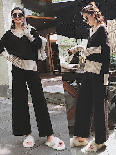 新作 おしゃれ カジュアル 気質 レディースセットアップ セーター ワイドパンツ カジュアルパンツ 二点セット シンプル 百掛け セット ニットセットアップ