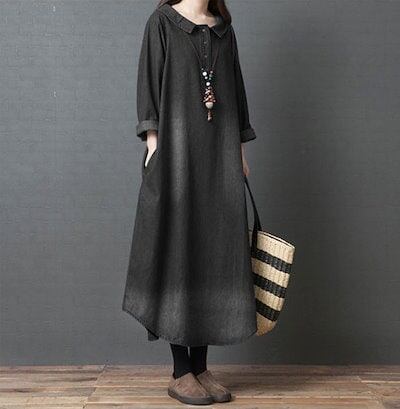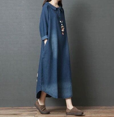 デニムワンピース きれいめ 春秋冬 ロングワンピース デニム シャツワンピース コットン 大きいサイズ バルーン レディース 長袖 マキシ丈 マキシワンピース ゆるゆる 着?せ 通勤 おしゃれ 無地