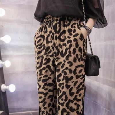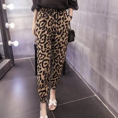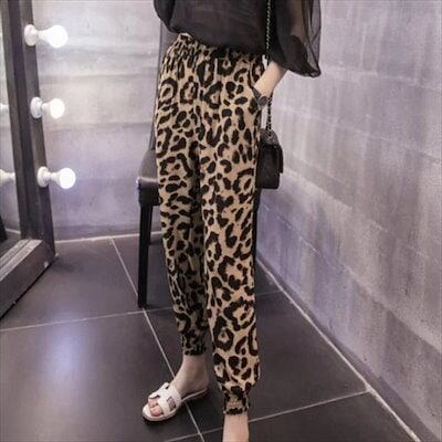 ヒョウ柄パンツレオパードパンツレディースヒョウ柄パンツズボンレパードポケットカジュアル大人可愛い春秋ウエストゴムブラウン茶203040ボトムスおしゃれスリムクロップドパンツアンクルパンツアンクル丈ハイ