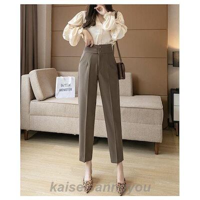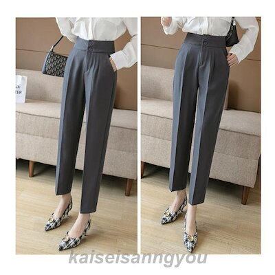 ハイウエスト スラックス アンクル パンツ タック 無地 上品 きれいめ オフィス 事務服 / レディース ボトムス 清楚 ド テーパード 大きいサイ