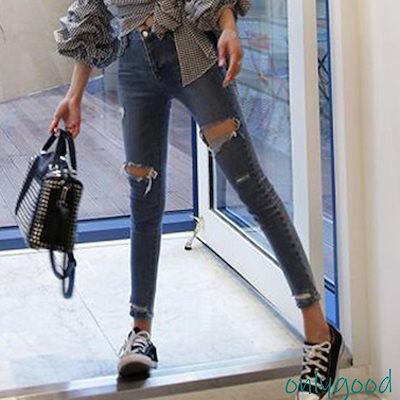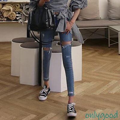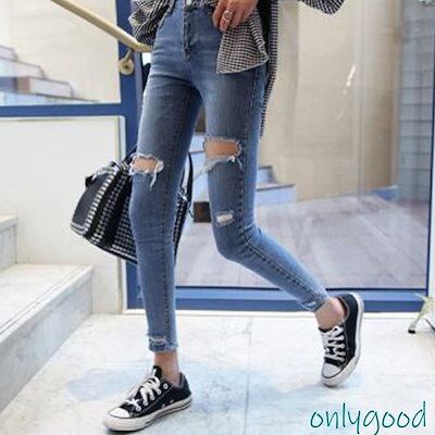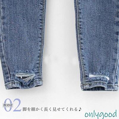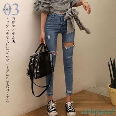 ダメージ スキニー レディース デニムパンツ タイト ジーンズ アンクル クラッシュデニム 穴開き ボトムス 美脚 ジーパン