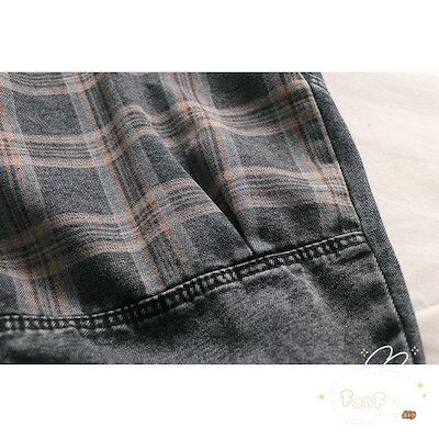 ジーンズ チェック柄 サルエルパンツ 秋 ロングパンツ アンクルパンツ デニム ウォッシュ レディース