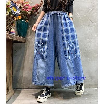 バギーパンツ ガウチョパンツ ジーンズ デニムパンツ ワイドパンツ アンクル丈 八分丈 切り替え レディース