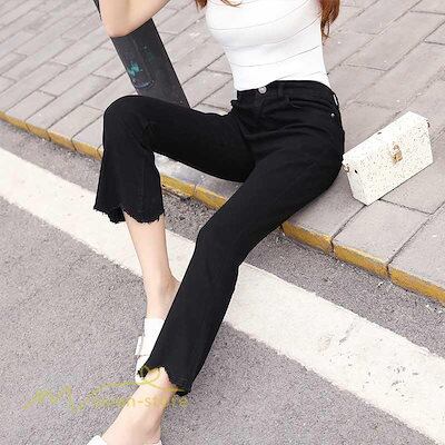 デニムパンツレディースパンツパンタロンラッパズボンアンクルパンツロングパンツジーンズジーパンハイウエストカジュアルパンツ通勤通学レディース