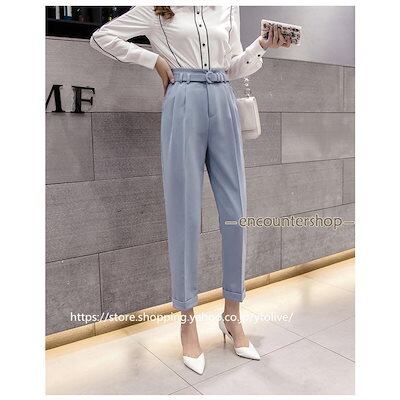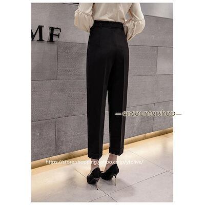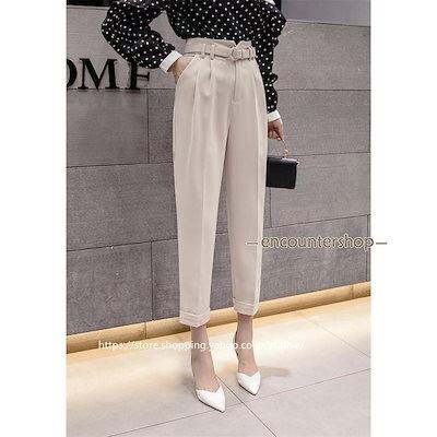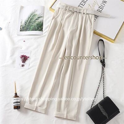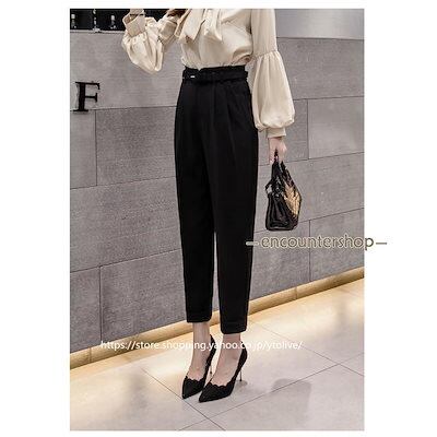 テーパードパンツ レディース ハイウエスト ベルト付き アンクル丈 九分丈 無地 シンプル 通勤 秋 コーデ