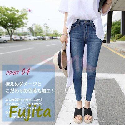 スキニー ジーンズ レディース デニム パンツ ストレッチ アンクル丈 9分丈 10分丈 ダメージ クラッシュ