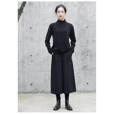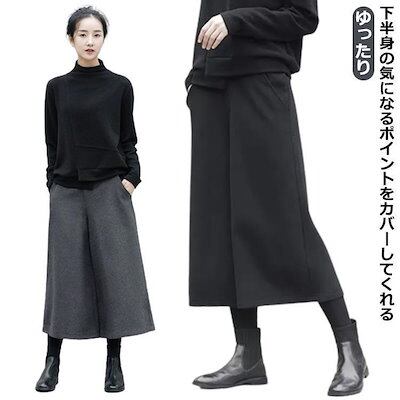 ガウチョパンツ レディース ウールタッチ ワイドパンツ フレアパンツ 無地 ボトムス 冬 秋 ズボン スカーチョ ポケット付き アンクルパンツ 九分丈
