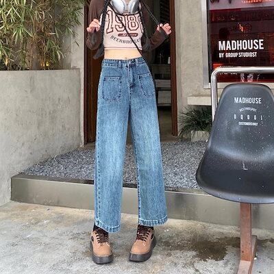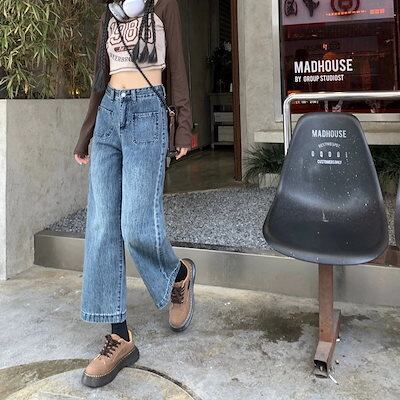 ジーンズ デニムパンツ gパン 長ズボン ハイウエスト 着痩せ ワイドパンツ 9分丈 アンクルパンツ エイジング加工 ストレート ボトムス レディース 春 秋 カジュアル ファッション ロングパンツ