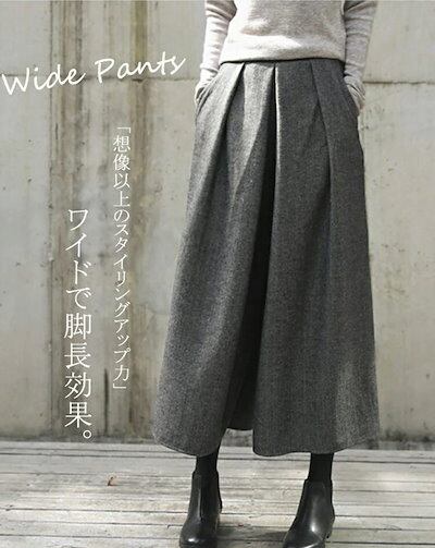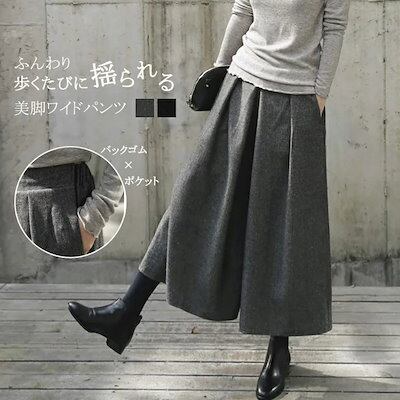 ふんわりパンツレディース秋冬ウール混暖かいボリュームワイドパンツ冬ゆったり体型カバーアンクルパンツ九分丈体型カバー脚細見えガウチョパンツウール防寒保温スカーチョきれいめ揺られる落ち感フェミニン通勤OL