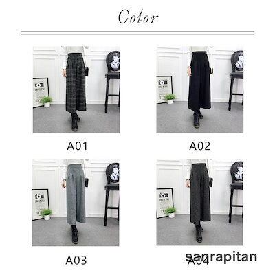ワイドパンツ ガウチョパンツ レディース ハイウエスト アンクル丈 秋冬 厚手 ウエストゴム スカーチョ ボトムス きれいめ 体型カバー 大きいサイズ