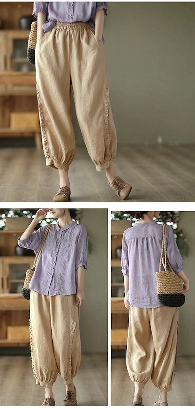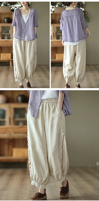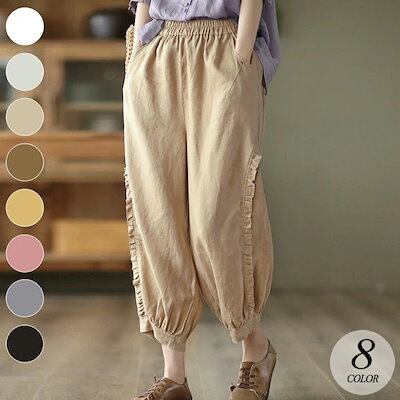 フリル サルエルパンツ バルーンパンツ ボトムス ジョガーパンツ ポケット 可愛い 春 夏 レディース 韓国ファッション