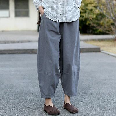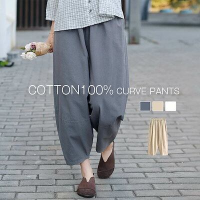 綿 バルーンパンツ レディース カーブパンツ 大人 大きいサイズ サルエルパンツ レディース ワイドパンツ 春 夏 秋 ゆったり ボトムス コットン100 サーカスパンツ ウエストゴム 切り替え 無地