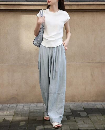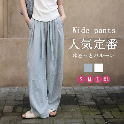 ワイドパンツ リネンパンツ レディース 夏 バルーンパンツ サルエルパンツ 薄手 リネン パンツ ボトムス 大きいサイズ ウエストゴム 綿 麻 イージーパンツ リラックス ゆるパン ロングパンツ シン