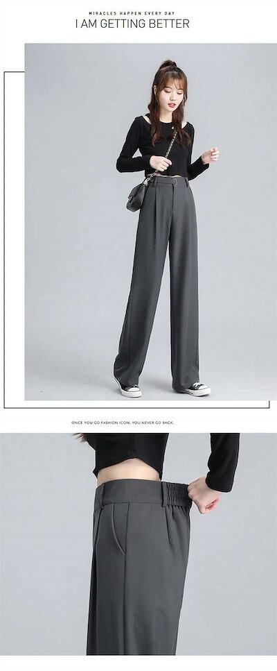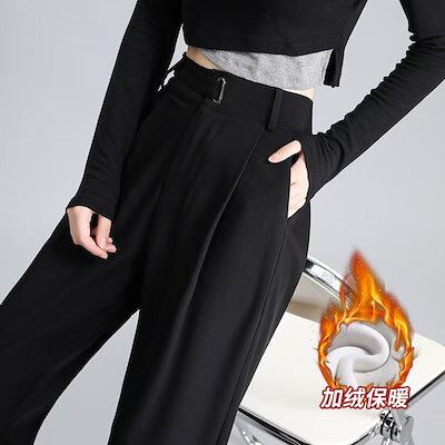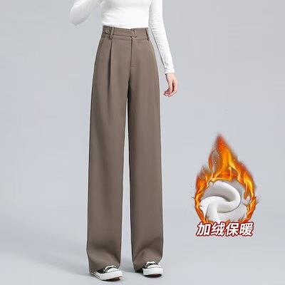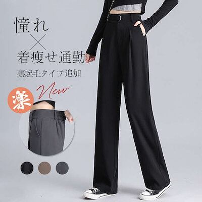 2025 新作 ガチョウ ストレートパンツ 仕事 ワイドパンツ レディース 裏起毛 女性 黒 パンツ ガチ