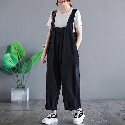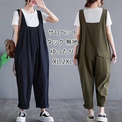 サロペット パンツ レディース オールインワン 大きいサイズ オーバーオール タック チノパン サルエルパンツ ワイド ロング ゆったり カジュアル 大人 サロペットパンツ ボトムス 可愛い 無地 仕