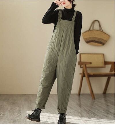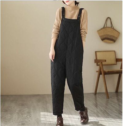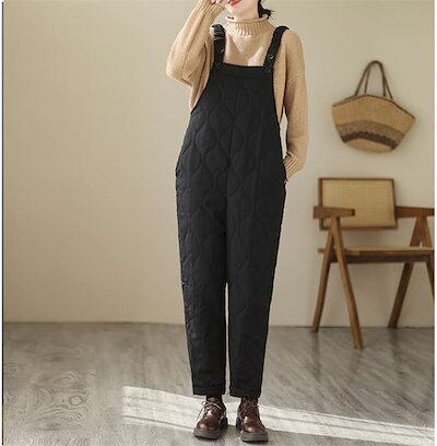 中綿 パンツ サロペット オールインワン 冬 ロングパンツ レディース パンツ ゆったり 暖かい サロペットパンツ ボトムス サルエルパンツ 大きいサイズ サロペット パンツ 黒 秋冬 体型カバー 大