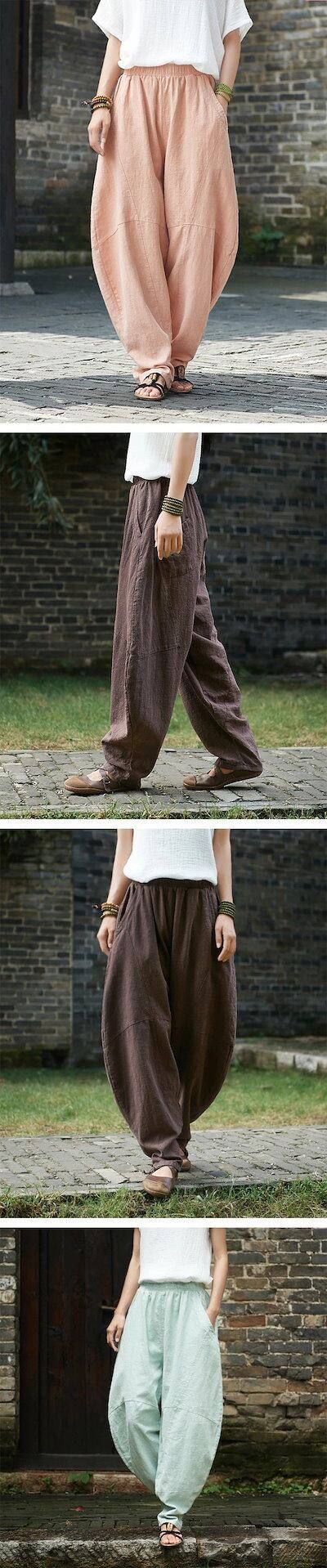【期間限定激安販売】リネンパンツ バルーンパンツ 麻パンツ ロングパンツ ワイドパンツ 春 夏 レディース 綿麻 切り替え カーブパンツ サルエルパンツ ハロンパンツ リラックスパンツ ロング ボト