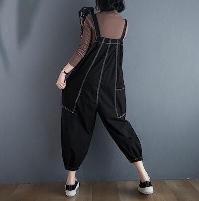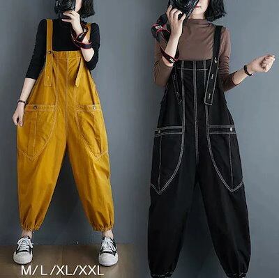 大人可愛いサロペット サロペットデニム風 サロペットオールインワンサロペットサルエルパンツデニムレディースオーバーオールワイドロングゆったりカジュアル大人パンツサロペット可愛いきれいめ カジュアル35
