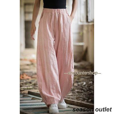 リネン パンツ レディース バルーンパンツ サーカスパンツ 春 夏 レディース サルエル 綿麻 ボトムス ウエストゴム 美脚 通勤 オフィス