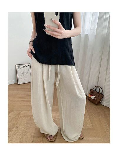 カーブパンツ レディース バルーンパンツ 大きいサイズ ゆったり カーブ パンツ コクーンパンツ イージー ウェストゴム 綿麻風 ボトムス サーカスパンツ リネン サルエルパンツ ワイドパンツ カ
