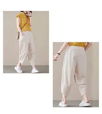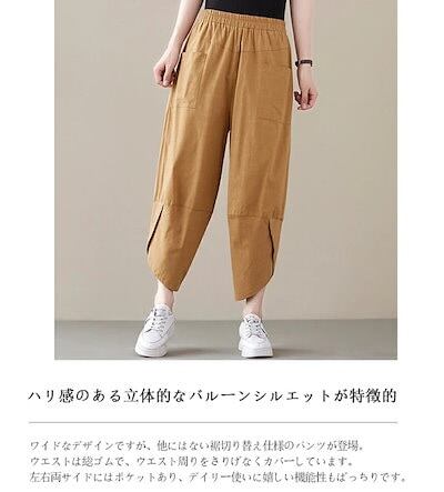 サルエルパンツ レディース 大人 バルーンパンツ 夏 綿麻風 パンツ 七分丈 ウェストゴム ポケット イージーパンツ 凉しい 薄手 バルーンパンツ 大きいサイズ ゆったり ワイド テーパードパンツ 細