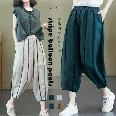 バルーンパンツ レディース 夏 パンツ 凉しい きれいめ サルエルパンツ 九分丈 ゆったり コクーンパンツ 大きいサイズ 体型カバー 着痩せ サーカスパンツストライプ 九分丈パンツ ボトムス 柄 コク