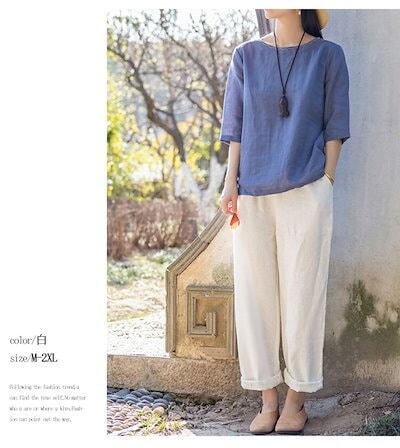 リネン風 テーパードパンツ レディース 大きいサイズ 夏 パンツ テーパード イージーパンツ 凉しい 薄手 軽い サルエルパンツ ゆったり ワイド 九分丈 バルーンパンツ 綿麻風 女性 ウェストゴム