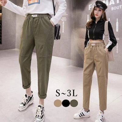 チノパン サルエルパンツ ロング ウエストゴム テーパードパンツ パンツ ウエストゴム 9分丈 レディース ボトムス ゆるパン オーバサイズ 大きめ M L 2L