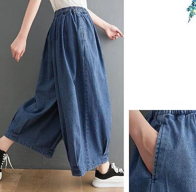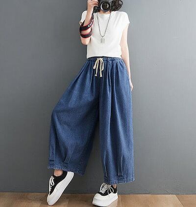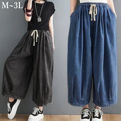 パンツ レディース 大きいサイズ バルーンパンツ サーカスパンツ サルエルパンツ ボリュームパンツ ウエストゴム デニム 9分丈 ロング 体型カバー M L 2L 3L