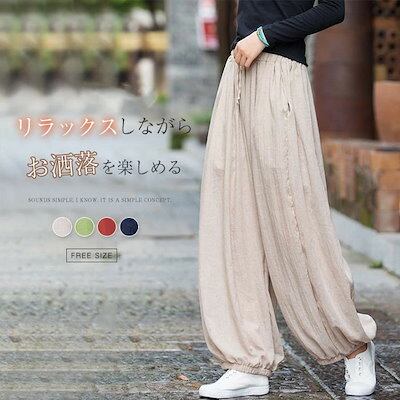 リネンパンツ レディース 夏 サーカスパンツ バルーンパンツ ワイドパンツ 春夏 薄手 涼しい 大きいサイズ サルエルパンツ コクーンパンツ コットンリネン リラックスパンツ ロング ボトムス 総ゴム