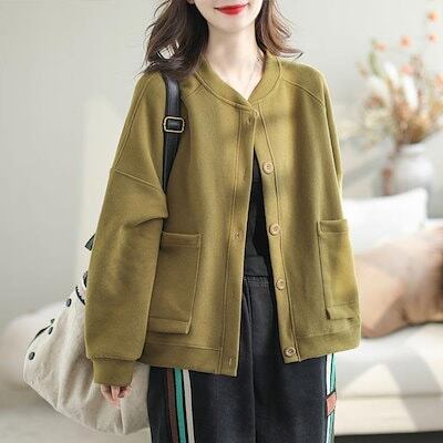 スウェット レディース トップス カーデ 長袖 スウェット カーディガン 羽織り アウター クルーネック スウェットカーディガン 冬 スウェ