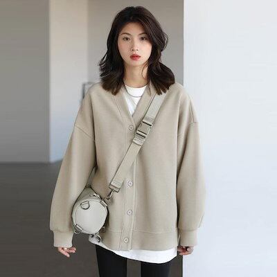 秋 スウェット レディース カーデ スウェットカーディガン 長袖 トップス 羽織り アウター 冬 スウェットカーディガン vネック ボリューム袖 パフ