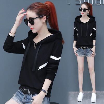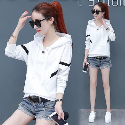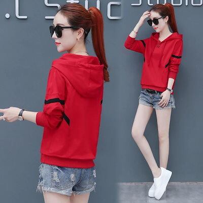 秋春パーカー薄い長袖トップスレディースゆったりトレーナータイプシンプル百掛け