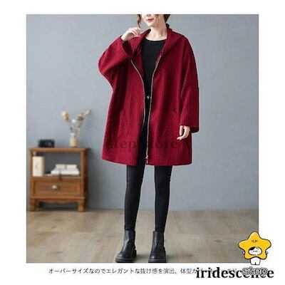 スプリングコートレディース秋コートフード付き4050ニットジャケットオーバーサイズニットパーカー30コート大きいサイズ
